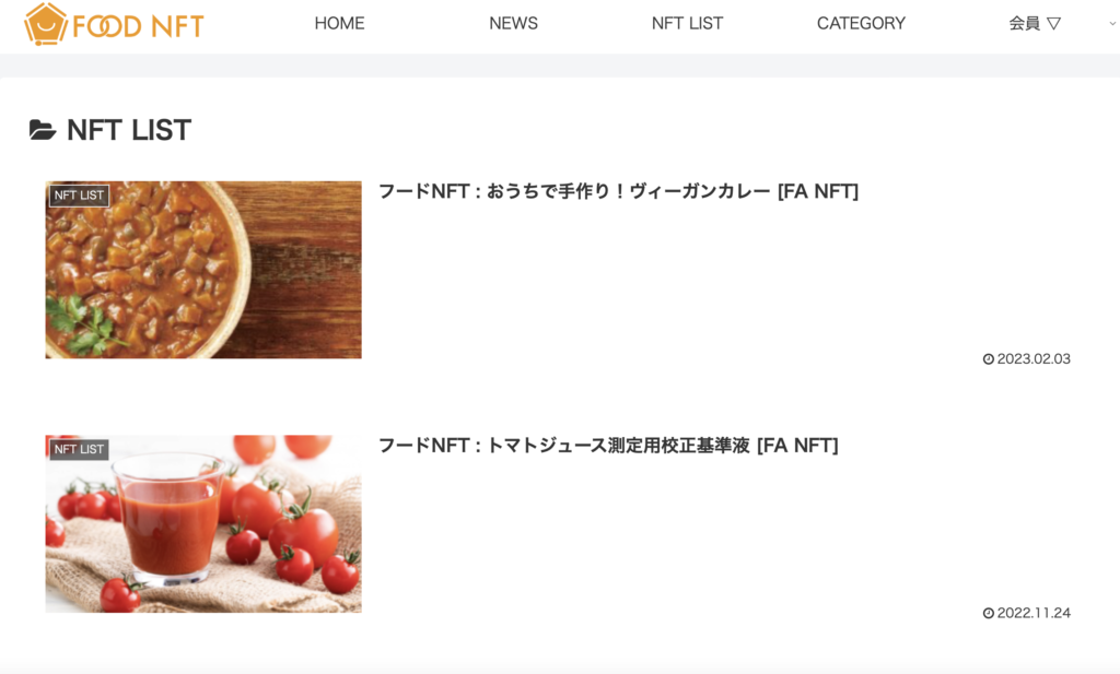 詳細は、FOOD NFT コンソーシアムのHPにて、”NFT LIST”のカテゴリーに格納されていますので、ご確認ください。