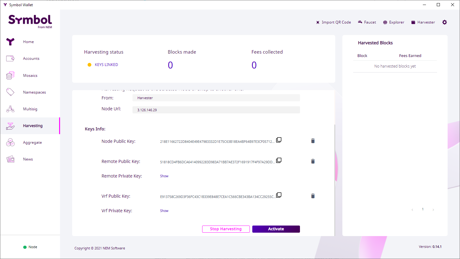 ハーベストをデスクトップウォレットで実行する