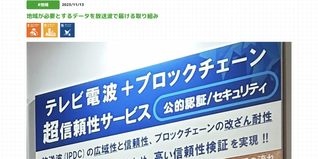 少し技術的な要素で難しかったところですが、どうやら”IDPC(IP Datacast)という、データをIPパケット方式に分割して放送波で送信、受信ができる機器を情報通信経路として使うことで、被災時にボランティアセンターが登録したスタッフの証明をチェーンに記録することができる・・・そして、IDPCにて放送発信し、スタッフが被災現場に到着し、IDPCで放送受信して証明書の真正性を証明することで、人のなりすまし(ユーザー認証)をブロックチェーンを使って検証することができる。”そうです。