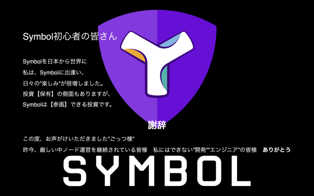 ただ、Symbolのコミュニティは日々色々と楽しみながら進めていることが多いと思います。
