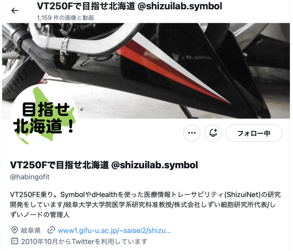 Xのアカウントは、”VT250Fで目指せ北海道 @shizuilab.symbol”ですね。